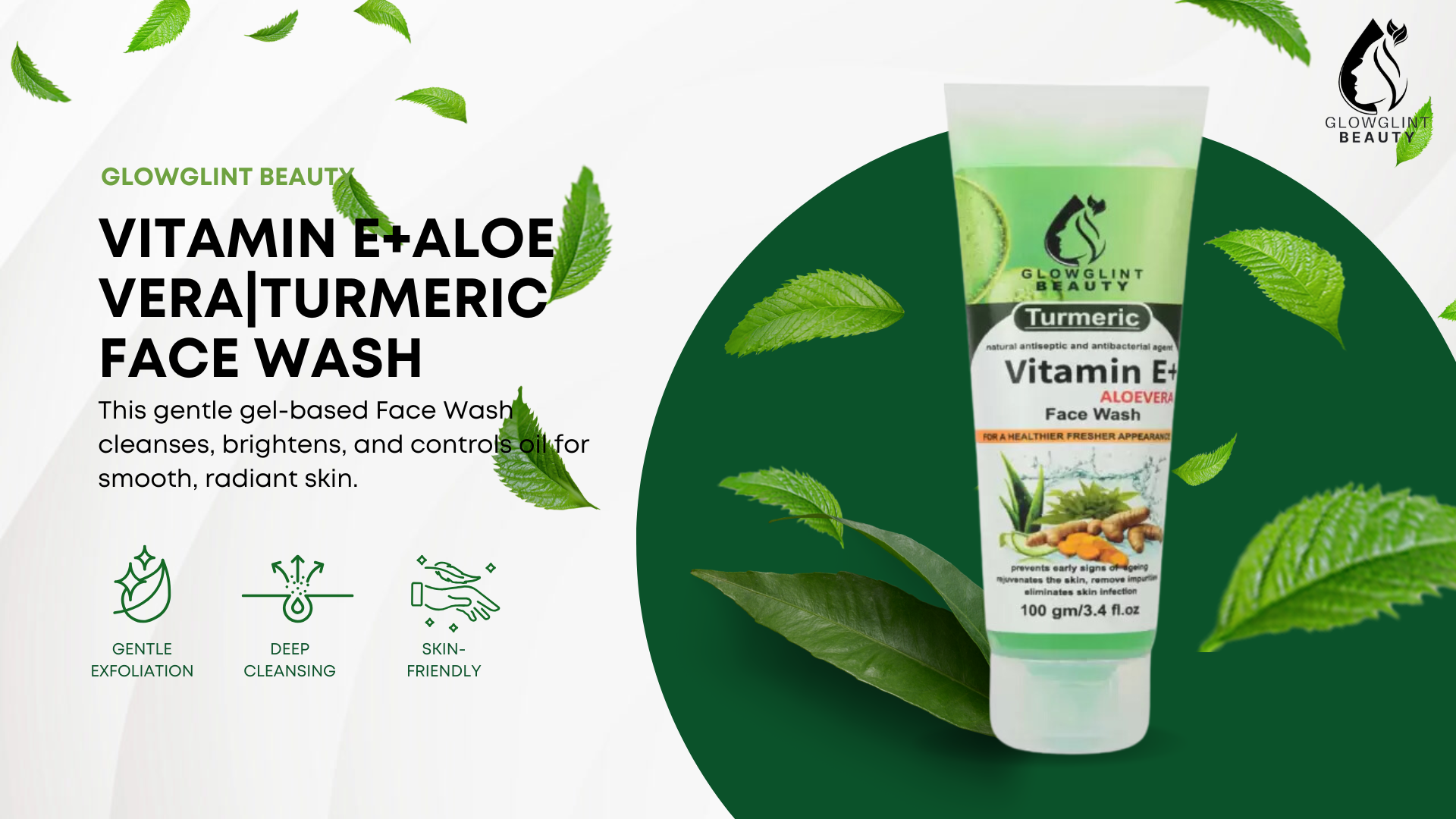 Glowglint Beauty Vitamin E + Aloe Vera + Turmeric Face Wash – Best Face Wash for Combination Skin & Tan Removal Face Wash